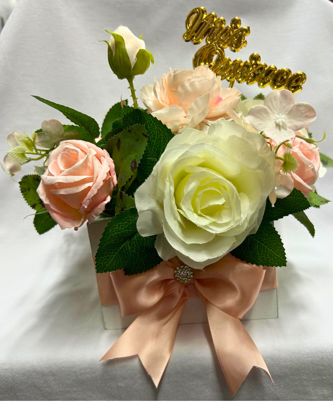 Este centro de mesa para evento de quince años está diseñado para realzar la decoración con elegancia y sofisticación. Su estructura cuidadosamente elaborada aporta un punto focal atractivo que complementa cualquier temática, creando una atmósfera memorable para la celebración. Ideal para transformar las mesas en espacios armoniosos y llenos de estilo, facilitando una ambientación que celebra este momento especial con distinción y buen gusto.